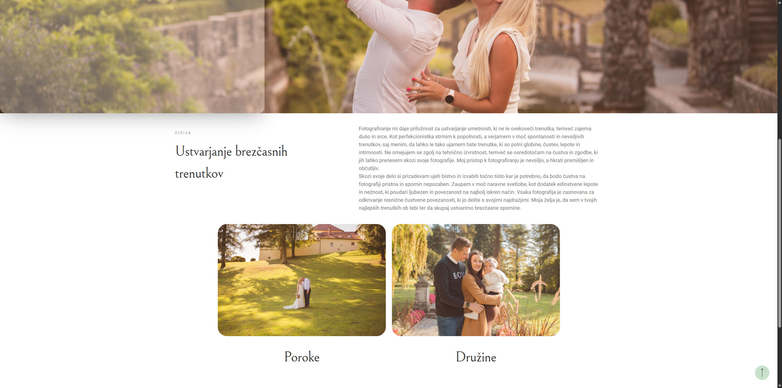 Za projekt Obtebi.si smo pripravili spletni portfelj fotografinje, specializirane za družinsko in poročno fotografijo. Stran je zasnovana minimalistično, z nevtralnimi barvami in čistim dizajnom, ki postavlja fotografije v ospredje ter obiskovalcem omogoča, da začutijo čustva in zgodbe, ujete v objektiv.