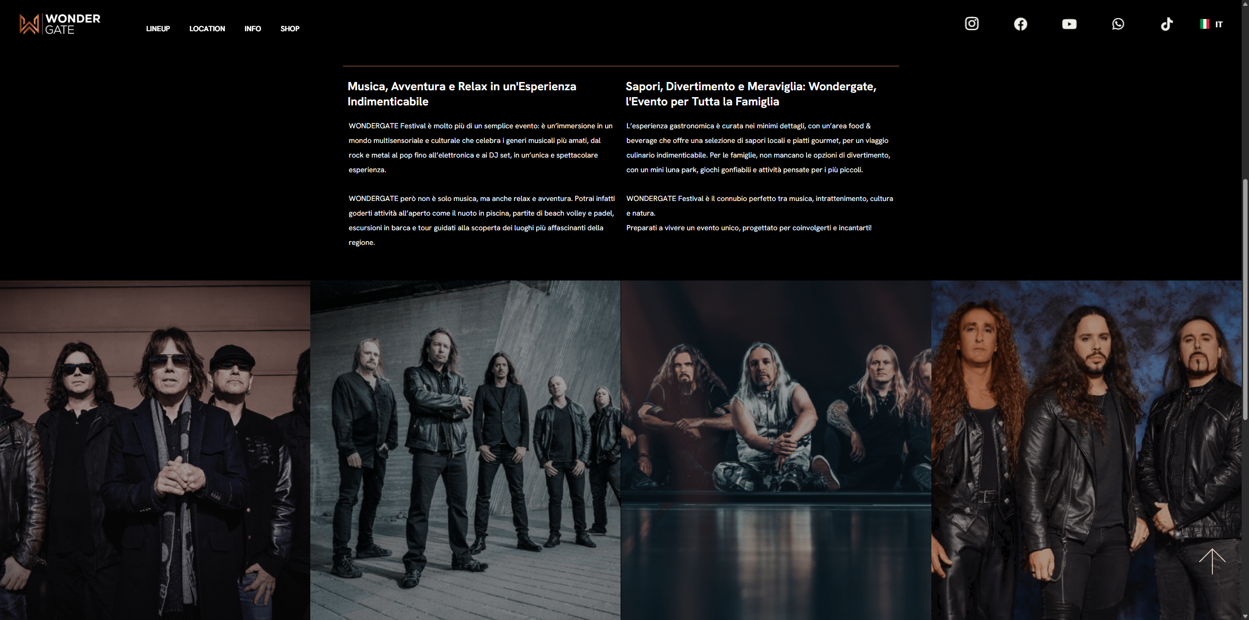 Wondergate je festivalska spletna stran, ki združuje glasbo, naravo in aktivnosti v edinstveno izkušnjo. Stran z modernim in vizualno močnim dizajnom obiskovalca takoj popelje v festivalsko vzdušje, hkrati pa omogoča enostaven dostop do programa, nastanitev, aktivnosti in informacij o dogodku. Poseben poudarek je na jasni strukturi in mobilni prilagodljivosti, saj stran obiskovalcem na poti nudi vse potrebne informacije in možnost nakupa paketov.